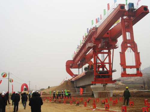 公司主要設(shè)備有:SLJ900T流動式運(yùn)架一體機(jī)、SXJ900T/32M分體式架橋機(jī)及運(yùn)梁車、MG450T提梁機(jī)(跨度有35M~40M,起升凈高20~40M)、ME900T提梁機(jī)、SXJ550T/32M一跨式架橋機(jī)及運(yùn)梁車、SGTJ180T鋪架機(jī)等高鐵運(yùn)架設(shè)備。